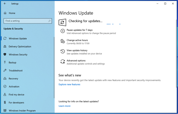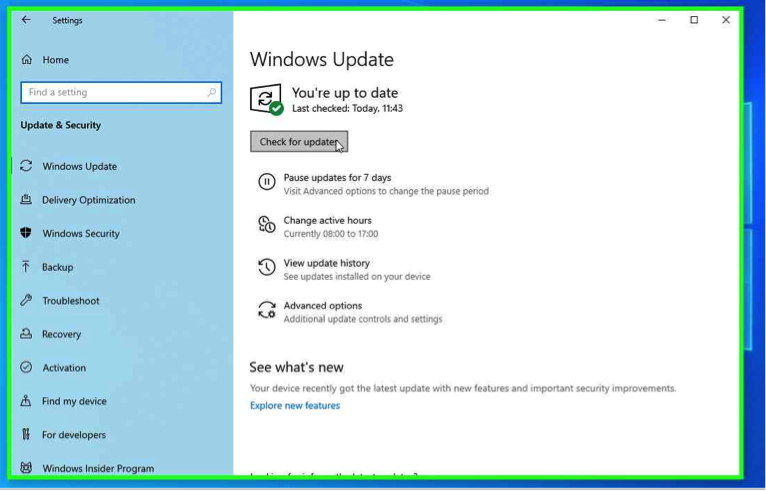 Require updates will be picked up, you may be required to restart your device and repeat the to process “Check for Updates” several times to fully complete the “Microsoft Windows” updates.