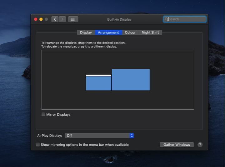 Using the cursor, Select the “Arrangment” tab. This will only show once an external monitor is detached. If not check the cabling.