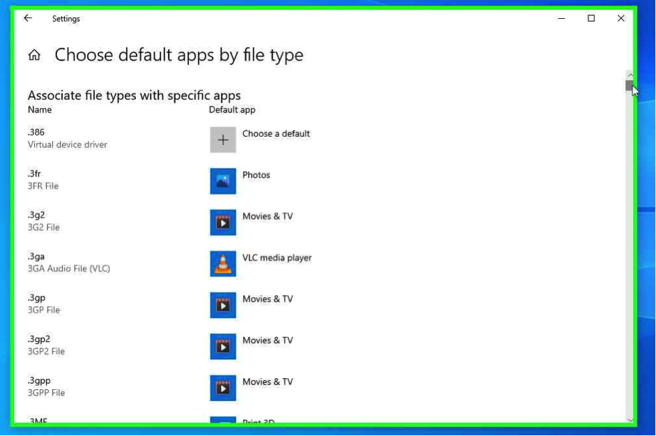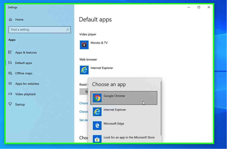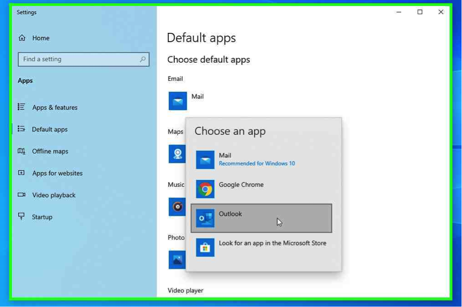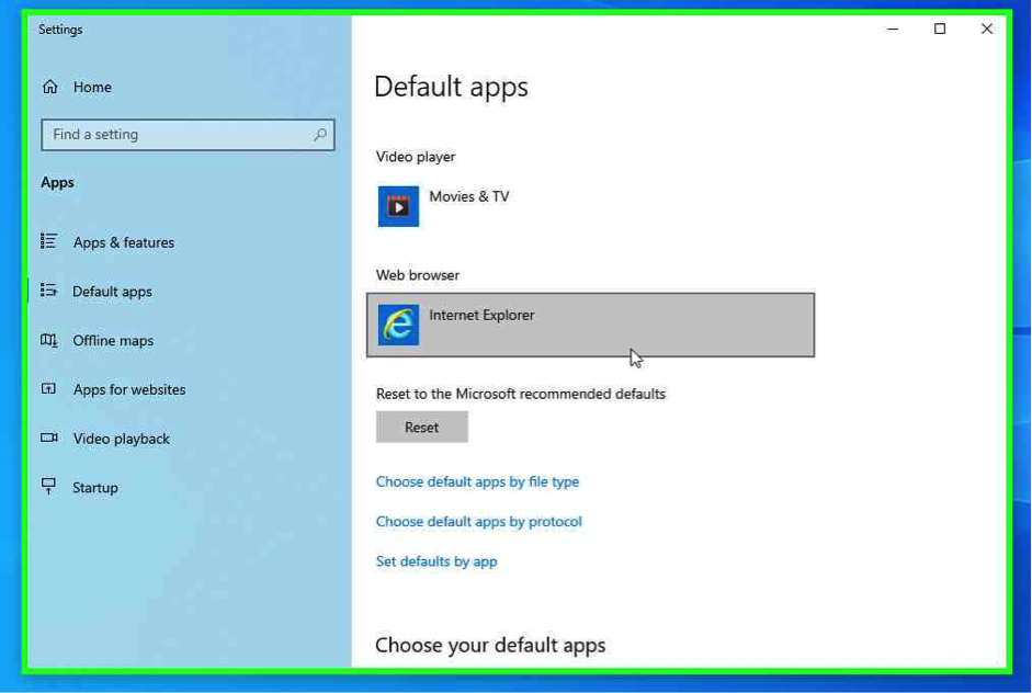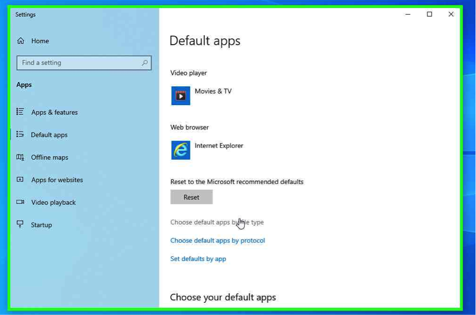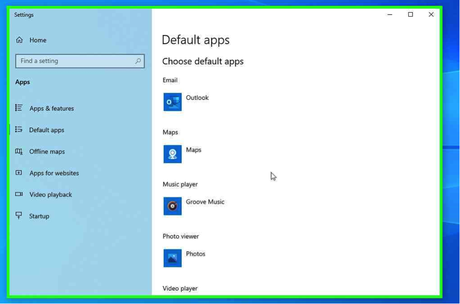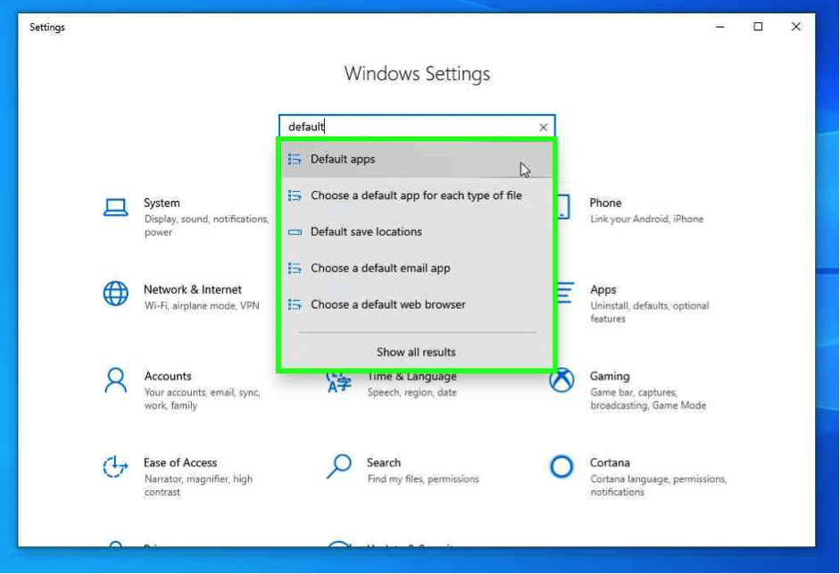 Using the keyboard enter “Default”, using the mouse select “Default Apps”